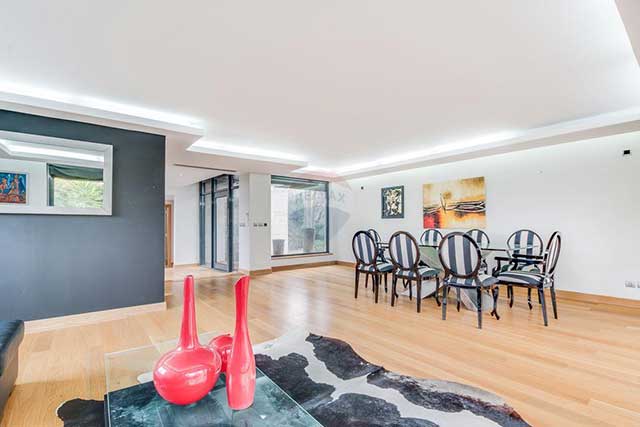 随着豪华和高品质的完成,这栋别墅通过其大型钢化双层玻璃门窗,南方和西