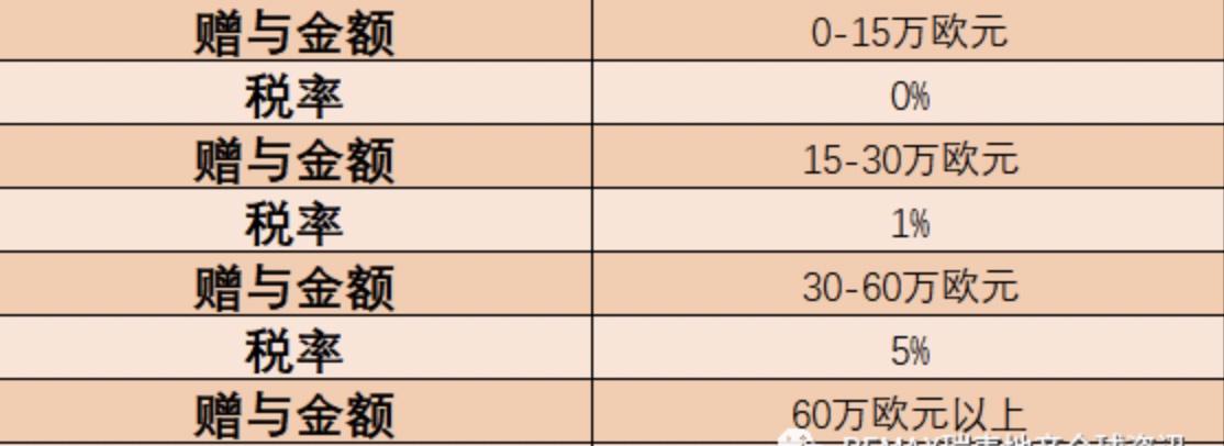 希腊的赠与税也是采用累进税率。捐赠者和受赠人是影响赠与税的决定性因素。受赠人是赠与税的征收对象,因此,赠与税是在获得赠与后才需要缴纳。