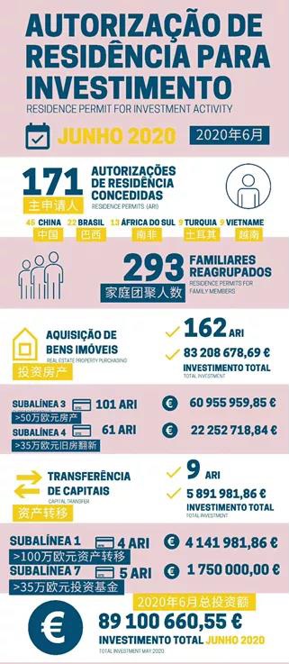 在疫情没有逐渐好转的情况下,投资者对葡萄牙的黄金签证追捧热度丝毫不减。根据6月份葡萄牙移民局发布的黄金签证数据中显示,6月份获批黄金签证的人数是171人;其中,162人通过购房方式取得,9人是通过投资基金等其他方式取得;在黄金签证获批的人数中,中国人占比排名第一,占了45人,巴西23人,南非13人,土耳其9人,另外9人来自越南。 可见中国人对葡萄牙黄金签证的喜爱丝毫不受疫情影响。
