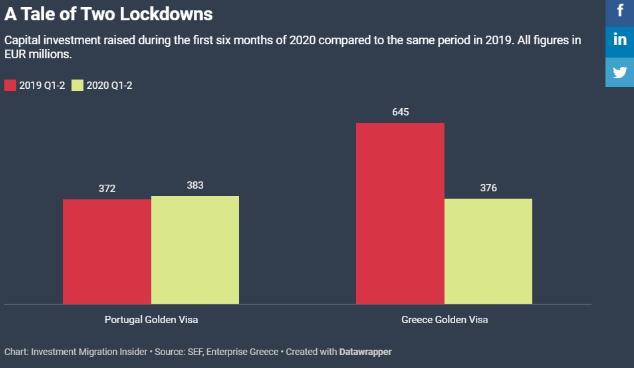 尽管今年一直受到疫情的影响,但是葡萄牙黄金签证投资金额同比去年同一季度基本持平,希腊黄金签证投资金额同比去年减少约40%。同时,希腊政府已经推出一系列外国投资者远程投资的修正。