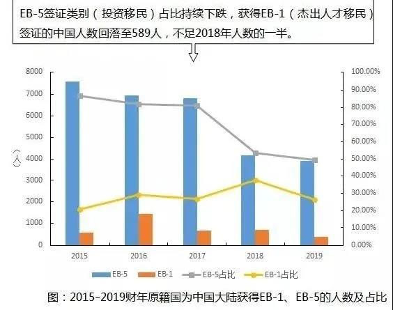 根据美国签证年度报告统计,2019年,中国获得EB-5签证的人数为3894人,是自2015年以来的连续“五连跌”,而其占全美同类签证的比例更是进一步“缩水”,由2015年的86.81%下滑至2019年的49.36%。