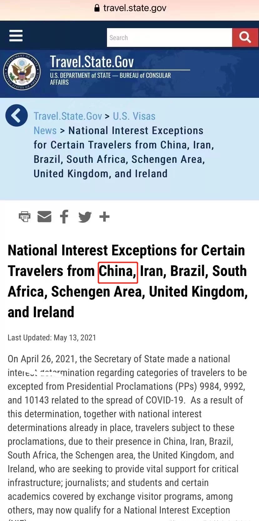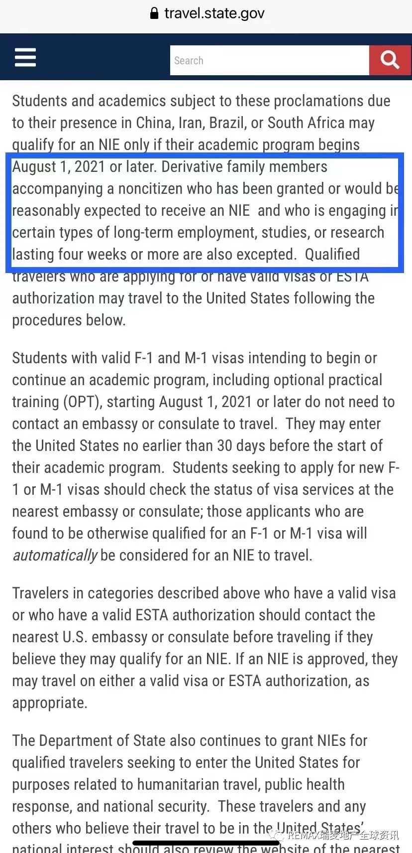 5月13日,美国国务院发布一项补充规定,对学生签证F、交换签证J和媒体签证I持有人的家属,符合条件者也允许直飞美国,免除隔离。主申请人在美国的工作、学习或者研究项目至少延续4周以上的,家属可以随行!!!